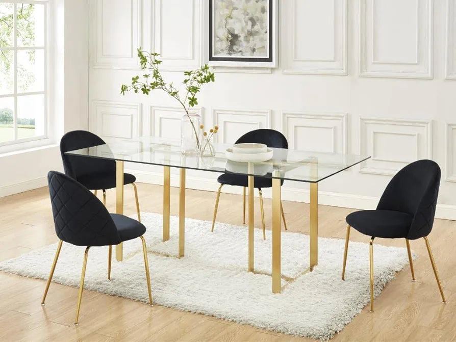 ✨ Dale un toque de estilo a tu hogar u oficina con esta hermosa silla tapizada en terciopelo negro con patas doradas metálicas.