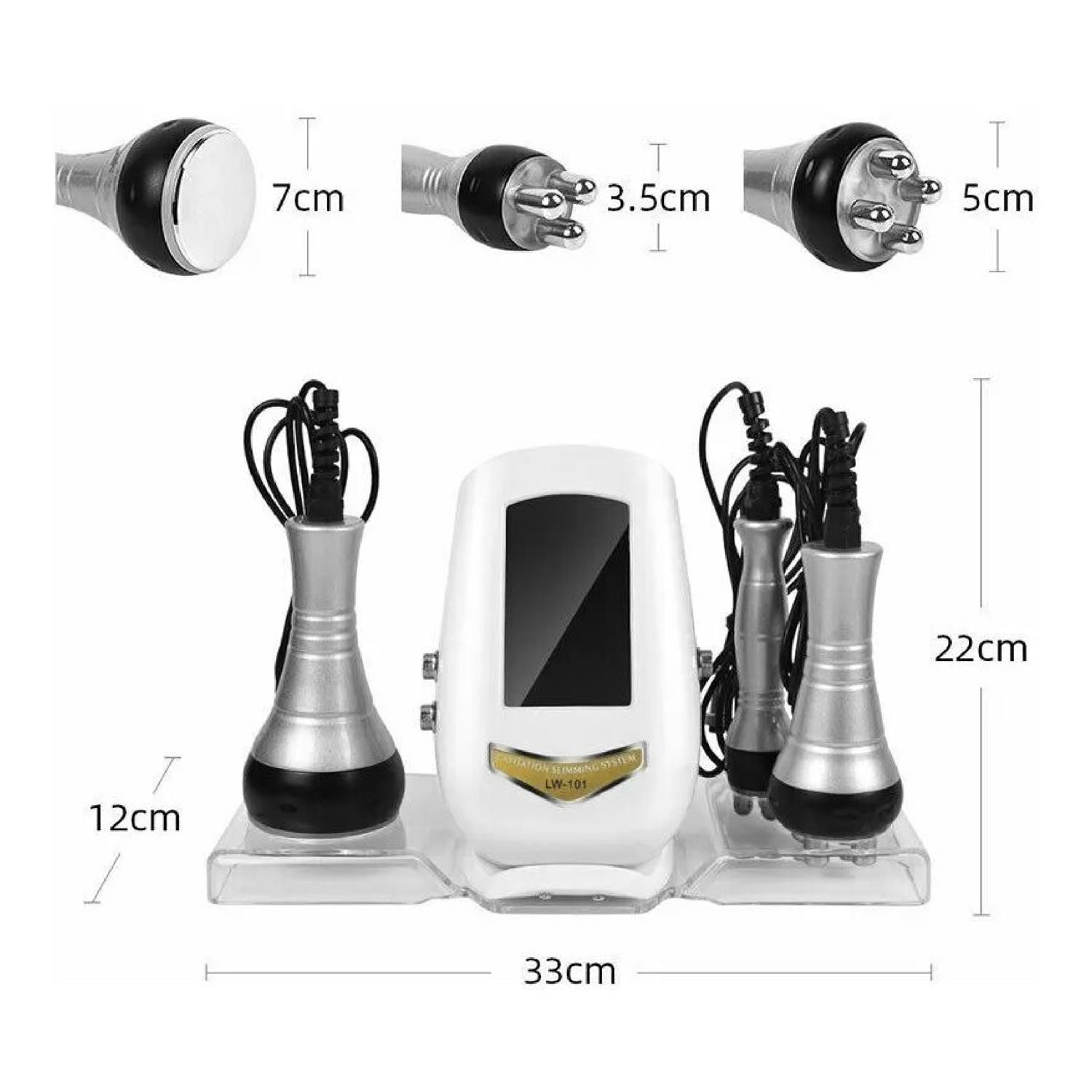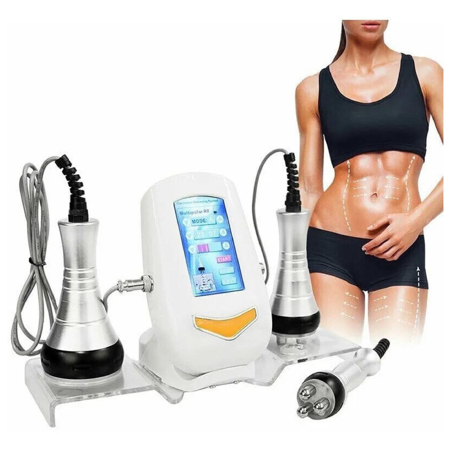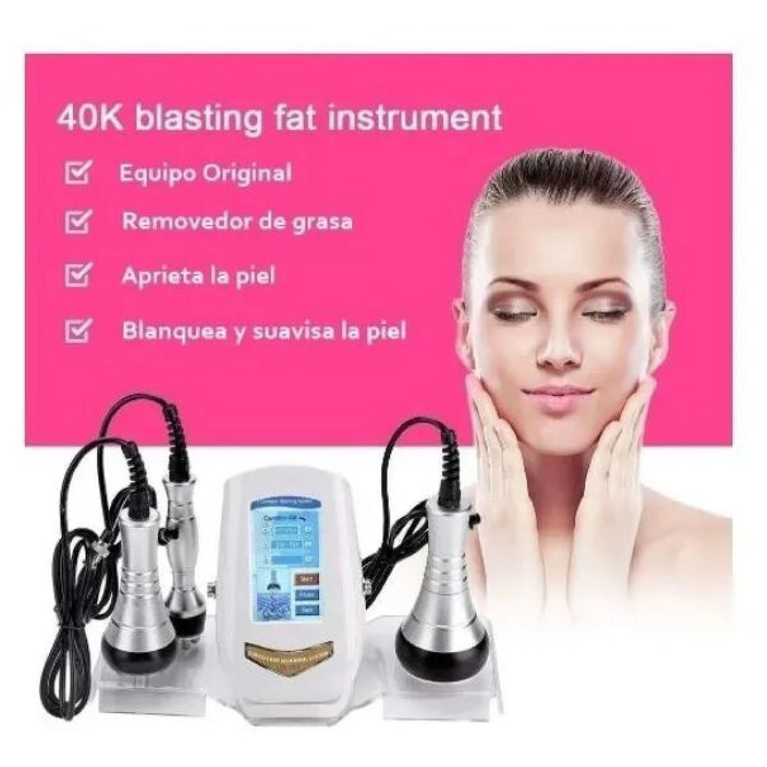 Cuenta con un cabezal de cavitación de 40khz capaz de romper eficazmente las células adiposas, adicional cuenta con 2 cabezales de radiofrecuencia facial y corporal.